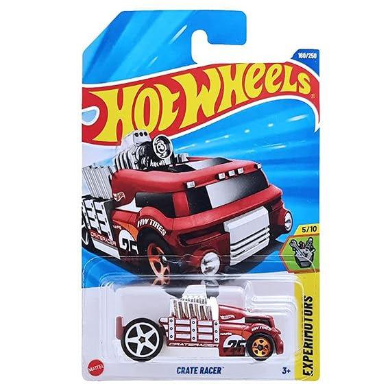 This unique crate racer toy features a distinctive colour scheme and eye-catching industrial-style crate detailing, making it stand out in any collection. Crafted from durable die-cast metal, it is built to withstand countless racing adventures while providing long-lasting play value for children aged 3 and above. Features custom wheels, detailed engine parts, and a crate storage section. Comes in original Hot Wheels packaging for play or display.