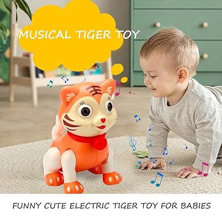 • This cute tiger toy features blinking eyes, walking action, and head movement. With multiple songs activated by a simple button press, it offers endless fun and entertainment for kids.