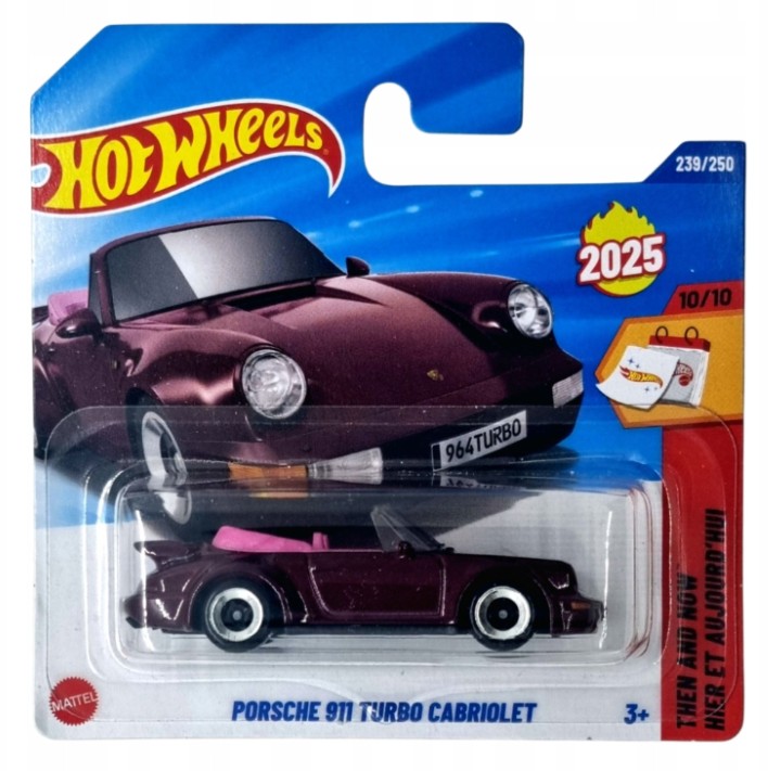Experience the evolution of performance with the Hot Wheels 1:64 Scale Porsche 911 Turbo Cabriolet from the Then and Now series. This stylish convertible captures both retro charm and modern speed with smooth-rolling wheels. Made in Malaysia and designed for ages 3 and up. A great gift for birthdays, holidays, or Porsche fans.