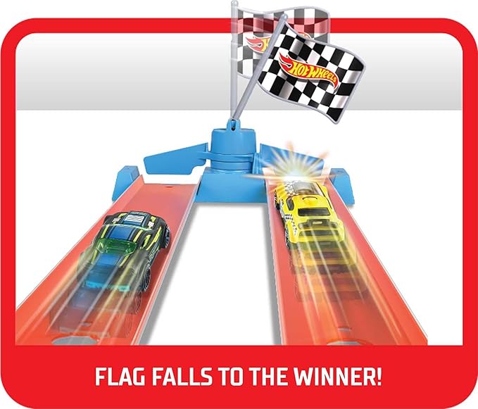 - Everything kids need to get racing right out of the package orange track, banked turns, side-by-side racing and launchers plus one hot wheel vehicle