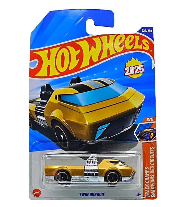 - Hot Wheels: A cool golden race car with twin-engine style, fast-moving wheels, and bold design. Built for performance on Hot Wheels tracks. One of the most exciting cars in the 2024 collection (228/250).