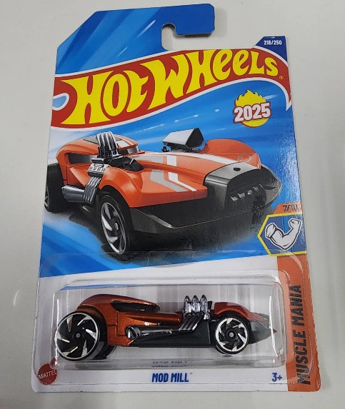 Unleash bold design with the Hot Wheels Mod Mill from the 2025 Muscle Mania series. This 1:64 scale mainline die-cast car features futuristic styling, sleek curves, and aggressive detailing that make it stand out on the track or shelf. Perfect for racing, stunts, or imaginative play, it’s fully compatible with all Hot Wheels track sets. Packaged in the 2025 K Case assortment, it’s a fun addition for collectors and kids alike. Each sold separately, subject to availability. Styles and colors may vary.