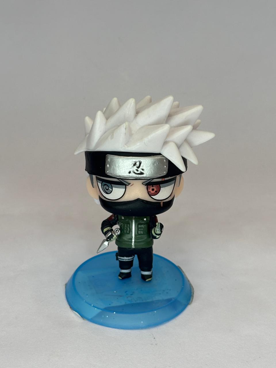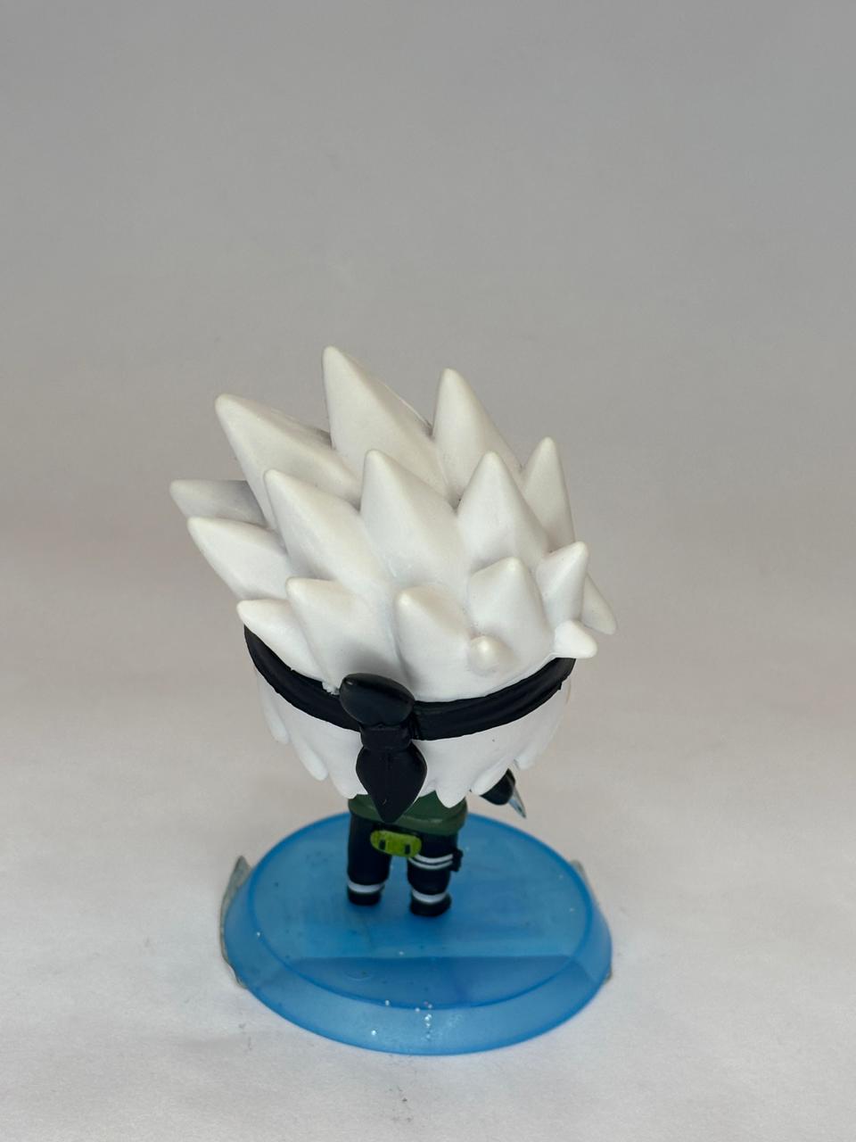 Designed in a cute super-deformed chibi style, this figure stands out with a big head, expressive dual-tone eyes, and sharp detailing. It features a cool masked ninja look with spiky white hair, a forehead protector, and a kunai dagger for a dynamic, battle-ready pose. Made from durable PVC with clean paintwork and mounted on a translucent blue round base, it’s ideal for desk décor, collecting, or gifting to anime and chibi figure lovers.