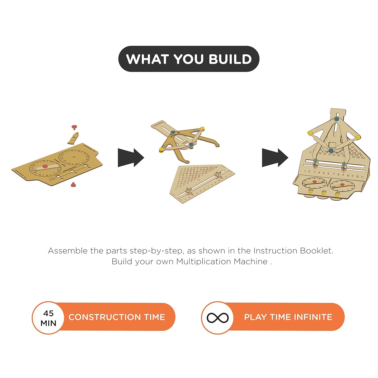 Make maths exciting with the Smartivity Multiplication Machine, a hands-on DIY toy kids can build themselves. Interactive spinners and sliders help children practice multiplication tables in a fun and engaging way. It develops logical thinking, problem-solving skills, focus, and fine motor abilities. Made from safe, eco-friendly engineered wood with easy no-glue, no-tools assembly.