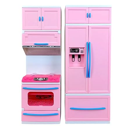 This realistic mini kitchen set includes a fridge, oven, and cabinets with interactive lights and sound effects for engaging play. Designed in an adorable pink style, it helps boost creativity, motor skills, and makes a perfect gift for kids aged 3+.