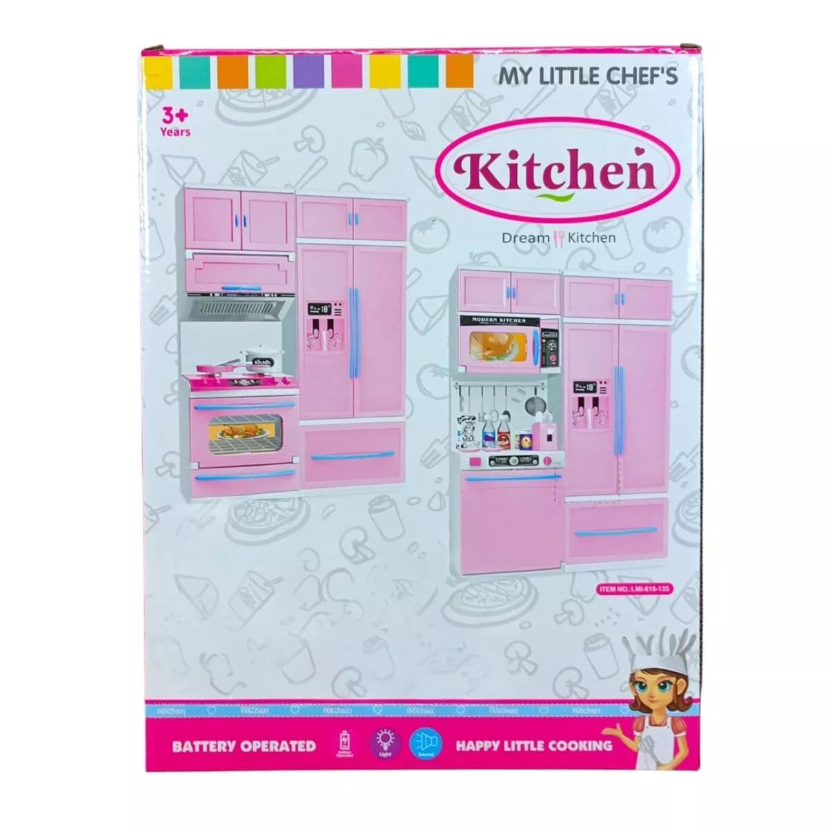 A cute pink mini kitchen set with lights and sounds—perfect for fun, imaginative role-play.