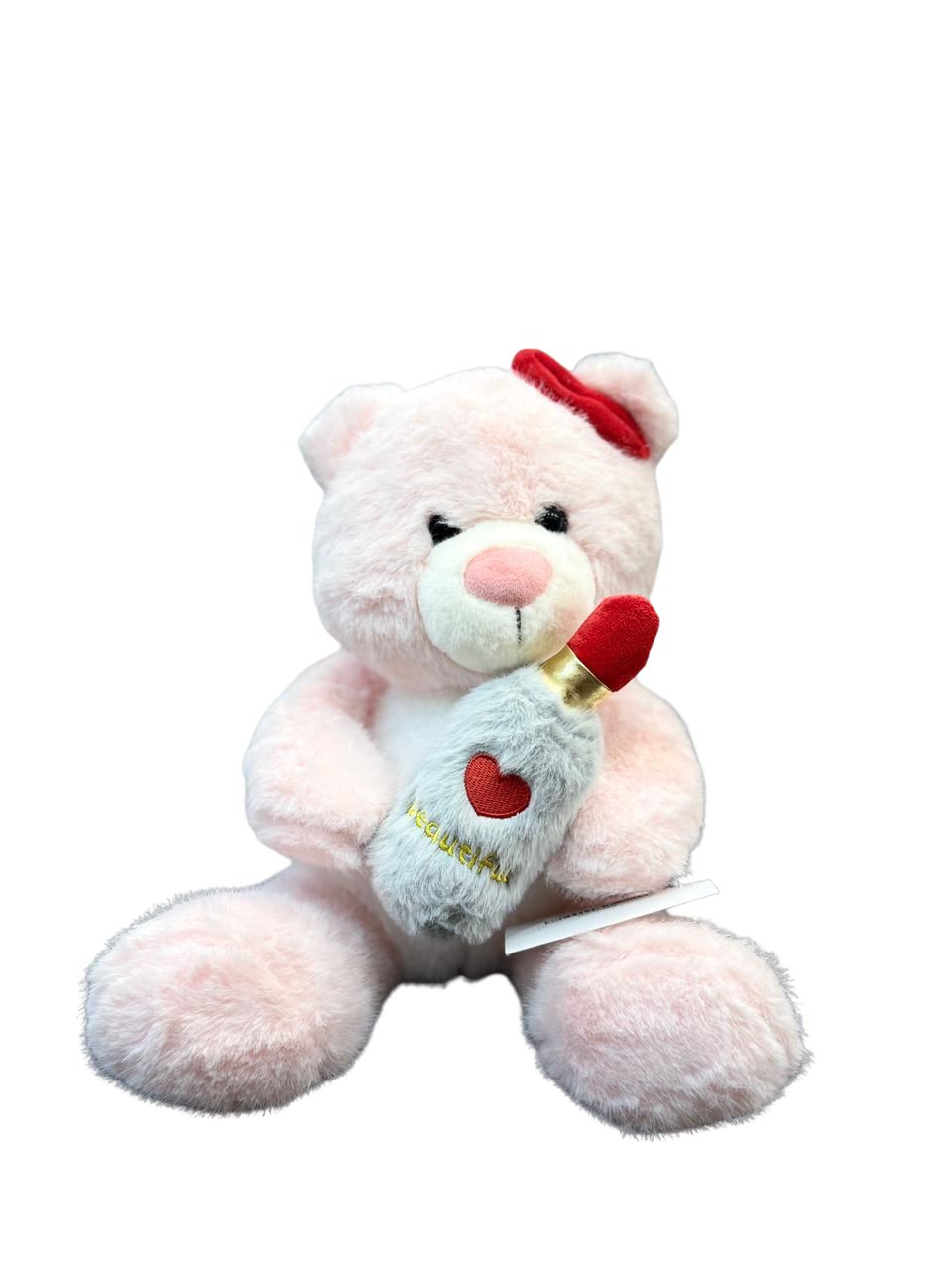 - This Teddy Bear with Lipstick & Bow is a cute and lovable companion for kids. Made with high-quality materials, it is soft, durable, and perfect for cuddling.