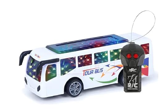 This high-quality remote control bus features forward, backward, functions with powerful crawling technology for smooth performance on rugged roads and pebbles. Made from durable ABS material with stunning 3D flashing LED lights, it is completely safe for kids with no sharp edges. Strong, reliable, and designed with your child’s safety in mind.