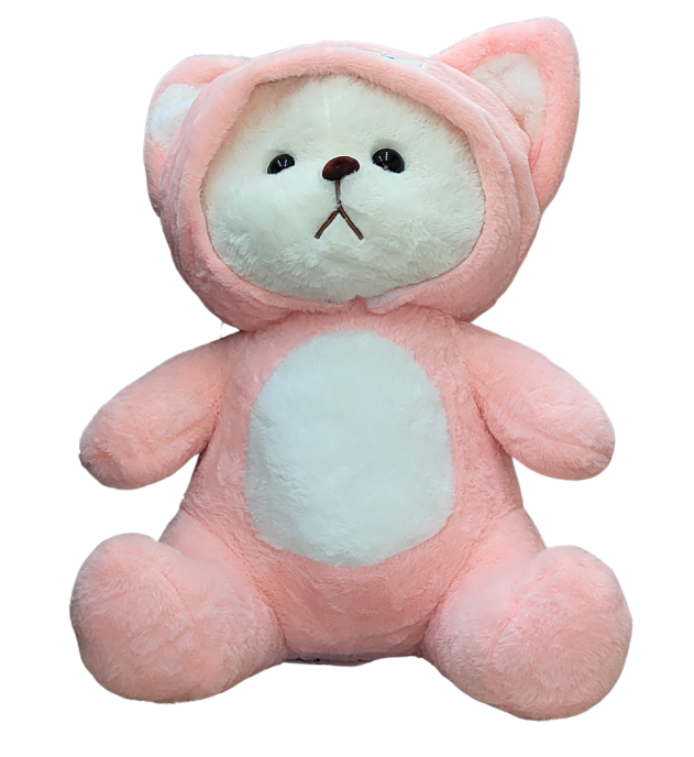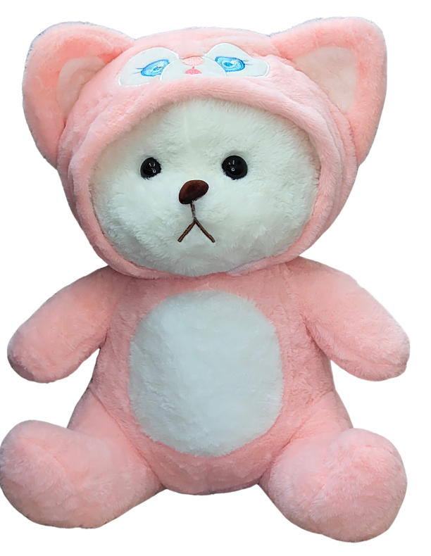 Super cute Hoodie Teddy Bear Soft Toy featuring an adorable pink cat hoodie and ultra-soft plush feel.