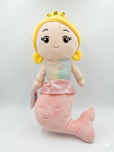 This adorable mermaid plush toy features a charming princess design with soft pastel colours. Made from premium plush material and filled with comfortable PP cotton for a cozy feel. Its attractive crown, smiling face, and pink tail make it a lovely decorative and play companion. Ideal gift for birthdays, baby showers, or for kids who love fantasy character toys.