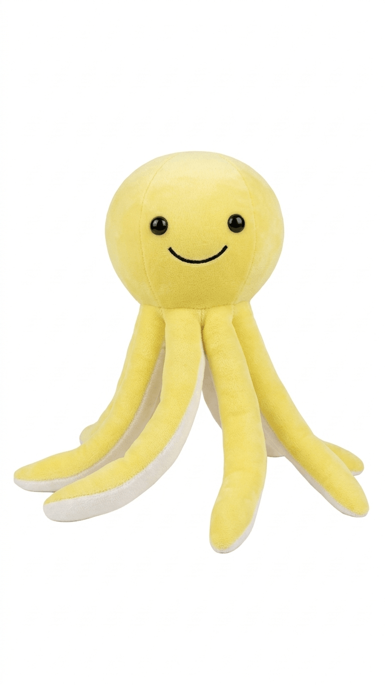 This adorable octopus plush toy features a bright yellow design that looks cheerful and eye-catching. Crafted from high-quality plush material that feels smooth, soft, and comfortable to touch. Its lightweight and huggable build makes it easy to carry and perfect for everyday cuddling. A lovely gift choice for birthdays, festivals, or as a cute decorative companion.