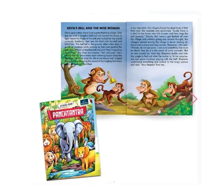 The Panchatantra is a collection of ancient stories originally written in Sanskrit. According to legend, a king worried about the future of his three foolish sons entrusted their education to a wise and versatile teacher named Vishnusarman. Through engaging stories, Vishnusarman taught them how to live wisely, find happiness, and achieve success in life.The word Pancha means five, and Tantra refers to doctrines of conduct or modes of action. These five principles are firmness of mind, creation of prosperity, earnest effort, friendship, and wisdom. The Panchatantra presents Nitishastra—the science of wise living—through simple and memorable tales, mostly featuring animals, making them especially appealing and enjoyable for children.