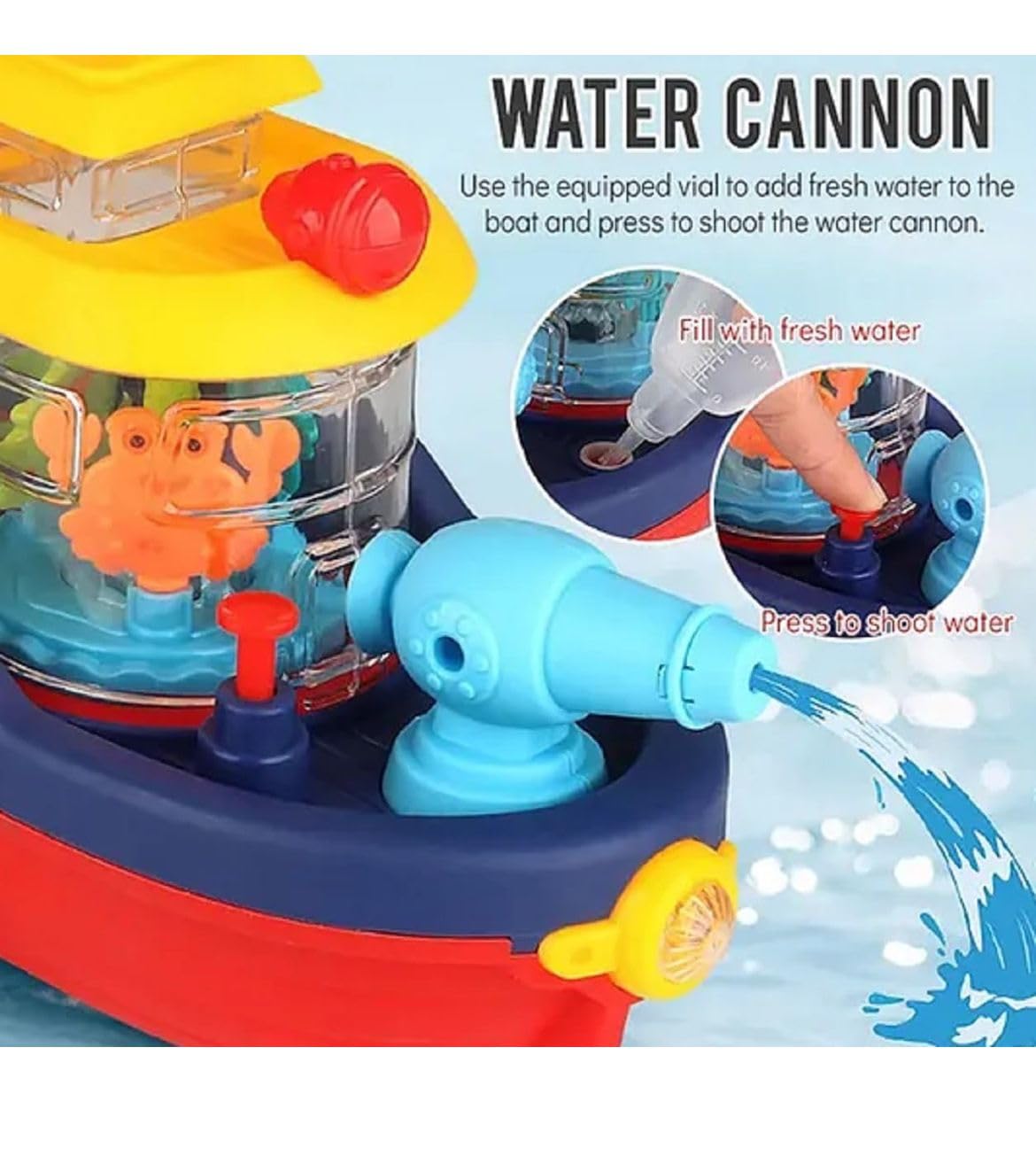 - Engaging Play Experience: Battery-operated boat with a water cannon for fun and exciting play.