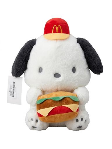 - Cute Pochacco plush wearing a McDonald’s-style cap and outfit for a fun and nostalgic look.